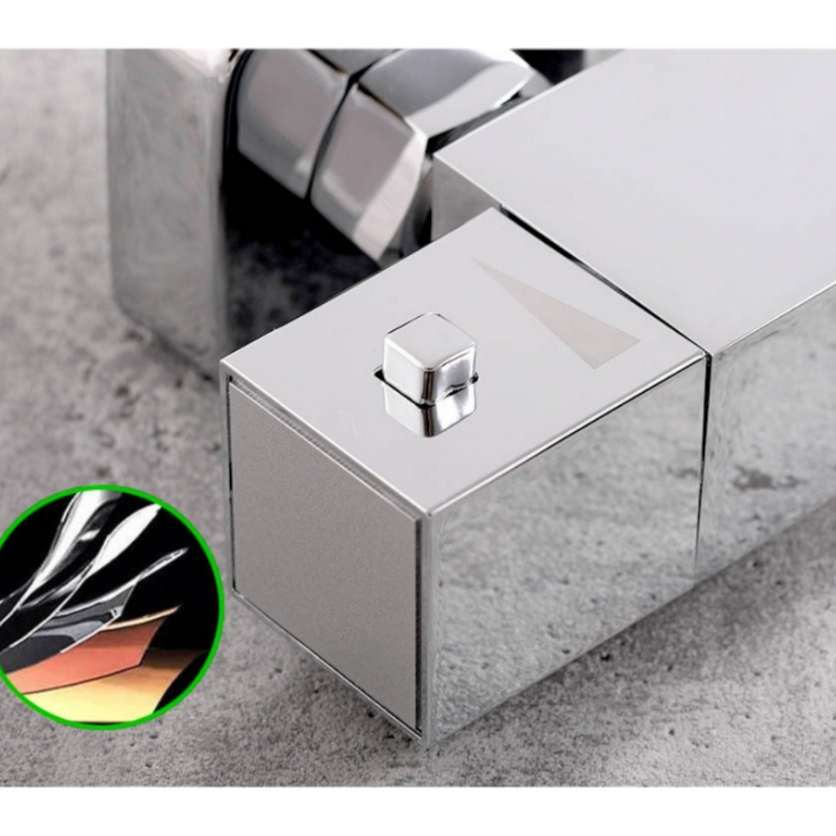 Смесител с термостат за душПредставяме ви висококачествения смесител с термостат, проектиран да осигури максимален комфорт и безопасност при използване на душа. Този смесител комбинира елегантен дизайн и иновативни технологии, за да ви предостави перфектната температура на водата всеки път.Основни характеристики:Термостатична функция:Термостатът автоматично регулира температурата на водата, за да предотврати внезапни промени и да осигури постоянна температура. Това гарантира безопасност и комфорт по време на душ.Хромирана повърхност:Висококачественият хром придава елегантен и модерен външен вид на смесителя, като същевременно го предпазва от корозия и износване. Хромираната повърхност е лесна за почистване и поддръжка.Издръжлива конструкция:Смесителят е изработен от висококачествени материали, които гарантират дълготрайност и надеждност. Конструкцията му е устойчива на натоварване и осигурява дългогодишна употреба.Прецизен контрол:Смесителят предлага прецизно регулиране на водния поток и температурата, което ви позволява да постигнете желаната настройка с лекота. Ергономичните дръжки осигуряват удобно и лесно използване.Лесен монтаж:Продуктът включва всички необходими части и инструкции за бърз и лесен монтаж. Инсталацията може да бъде извършена без нужда от специализирани инструменти.Размери и технически данни:Общата дължина: около 20 смШирина: около 5.5 смВисочина: около 3.5 смКомплектът включва:Смесител с термостатМонтажни аксесоари (гайки, уплътнители)Предимства на продукта:Сигурност и комфорт: Термостатичната функция осигурява постоянна температура на водата, предотвратявайки внезапни промени и осигурявайки комфортен душ.Висококачествени материали: Хромираната повърхност и здравата конструкция гарантират дълготрайност и надеждност.Лесен за използване: Прецизният контрол и ергономичните дръжки правят използването на смесителя лесно и удобно.Модерен дизайн: Елегантният външен вид на смесителя добавя стилен акцент към вашата баня.Този смесител с термостат е идеалното решение за тези, които търсят безопасност, комфорт и стил в своята баня. Насладете се на перфектната температура на водата всеки път с този висококачествен продукт.