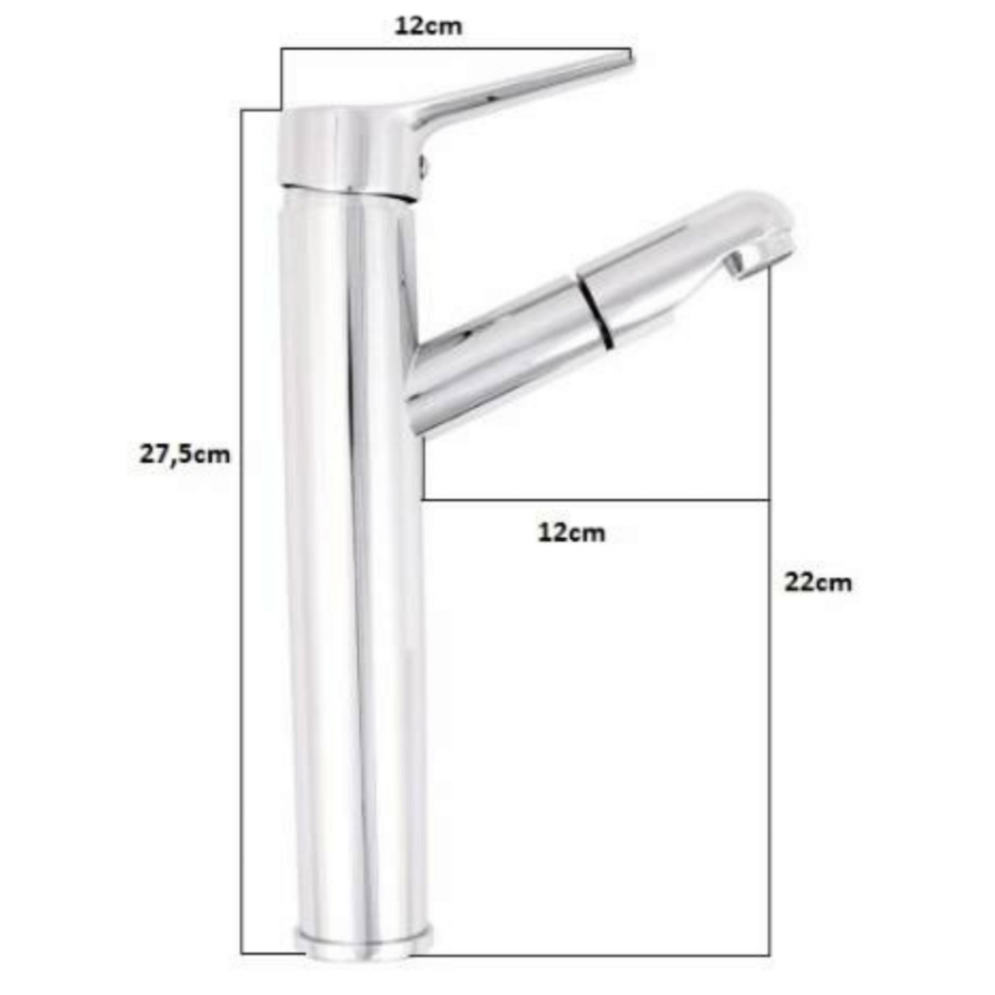 Смесител за умивалник с издърпващ се чучурТози модерен и функционален смесител за умивалник с издърпващ се чучур е перфектното допълнение към всяка съвременна баня или кухня. Със своя елегантен дизайн и сребристо покритие, този смесител съчетава естетика и практичност, придавайки изискан вид на вашето пространство.Размери и дизайн:Височина: 27.5 смШирина: 12 смДълбочина на чучура: 12 смВисочина на чучура: 22 смСмесителят разполага с висок чучур, който позволява лесно напълване на големи съдове и осигурява удобство при миене на ръце и други нужди. Със своята възможност за издърпване на чучура, той предлага максимална гъвкавост и удобство при ежедневната употреба, което го прави идеален за натоварени бани и кухни.Материали и покритие: