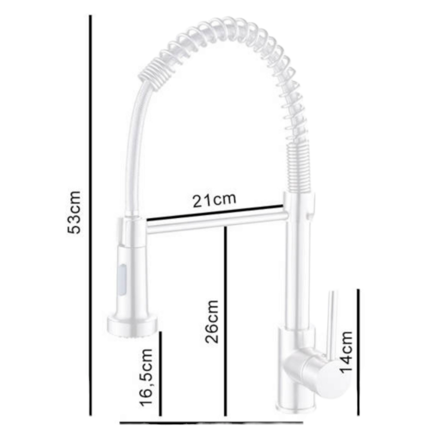 Този кухненски смесител с хромирано покритие съчетава елегантност и висока функционалност, предлагайки модерен и стилен дизайн, който ще се впише идеално във всяка съвременна кухня. Със своя издърпващ се и въртящ се на 360 градуса чучур, този смесител осигурява максимална гъвкавост и удобство при използване.Основни характеристики:Материал: Висококачествена неръждаема стомана с хромирано покритие, което осигурява дълготрайна устойчивост на корозия и лесно почистване.Цвят: ХромРазмери:Височина на смесителя: 53 смДължина на чучура: 21 смВисочина на изхода: 26 смДължина на ръкохватката: 14 смДължина на чучура: 16,5 смФункционалност и дизайн:Издърпващ се чучур: Осигурява лесно миене на съдове и почистване на мивката. Идеален за големи и дълбоки съдове.360-градусово въртене: Позволява пълна гъвкавост и достъп до всички части на мивката, което е изключително удобно за многозадачна работа в кухнята.Ергономична ръкохватка: Лесно и точно регулиране на температурата и водния поток.Допълнителни функции:Многофункционална дюза: Възможност за превключване между различни режими на струята за оптимално измиване и пестене на вода.Гъвкав маркуч: Устойчив и дълготраен, осигурява плавно движение и удобно използване.Лесен монтаж: Включени всички необходими части за инсталация, включително гъвкави маркучи за топла и студена вода и монтажен комплект.Комплектът включва:1 бр. Кухненски смесител с издърпващ се чучур2 бр. Гъвкави маркучи за топла и студена вода1 бр. Монтажен комплектТози кухненски смесител с хромирано покритие не само добавя стил и елегантност във вашата кухня, но и предлага висока функционалност и удобство. Идеален за всяко домакинство, той улеснява ежедневните кухненски задачи и гарантира дълготрайна и безпроблемна употреба.