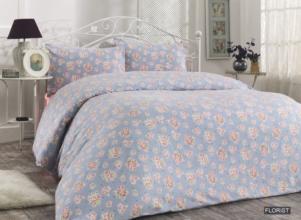 Спален комплект бархет FLORISTПотопете се в уют и комфорт с нашия висококачествен спален комплект, изработен от 100% памучна материя – бархет, която е известна със своята мекота и способност да задържа топлината, правейки я идеален избор за студените зимни месеци. С размери 200x220 см, този комплект осигурява пълно покритие и удобство за вашето легло, гарантирайки ви топлина и защита през цялата нощ.Материята от бархет е внимателно избрана заради своите отлични характеристики. Тя е не само изключително мека и приятна на допир, но и издръжлива, което я прави перфектен избор за ежедневна употреба. Бархетът има уникална текстура, която му придава леко плюшено усещане, създавайки топло обгръщане, което ще ви предпази от студа дори в най-студените нощи.Този спален комплект е създаден с внимание към детайлите. Флоралният десен, който украсява плата, е елегантен и деликатен, добавяйки стил и свежест на всяка спалня. Нежните розови и кремави цветя на светлосин фон създават атмосфера на спокойствие и романтика, придавайки уютен завършек на интериора на вашата стая.Комплектът включва всичко необходимо за завършена визия на вашето легло – горен чаршаф, долен чаршаф и калъфки за възглавници, всички те съобразени с последните тенденции в текстилния дизайн. Всеки елемент е проектиран така, че да се вписва хармонично в общия стил, като същевременно предлага изключителен комфорт.Освен стил и уют, този спален комплект предлага и практичност. Памучната материя е известна със своите дишащи свойства, които позволяват на кожата да диша, като същевременно задържа топлината, което го прави подходящ както за зимата, така и за преходните сезони. Лесен за поддръжка, този комплект може да се пере в пералня, без да губи своята форма, цвят или мекота, което го прави дълготрайно и практично решение за вашия дом.Независимо дали търсите начин да освежите спалнята си, или искате да добавите още топлина и уют в студените зимни нощи, този спален комплект от 100% памучен бархет е перфектният избор. Съчетавайки комфорт, елегантност и практичност, той ще стане неотменна част от вашето ежедневие, носейки радост и удобство във всяка вечер. Изберете качество и стил за вашия дом и се наслаждавайте на топли, спокойни нощи с този невероятен спален комплект.